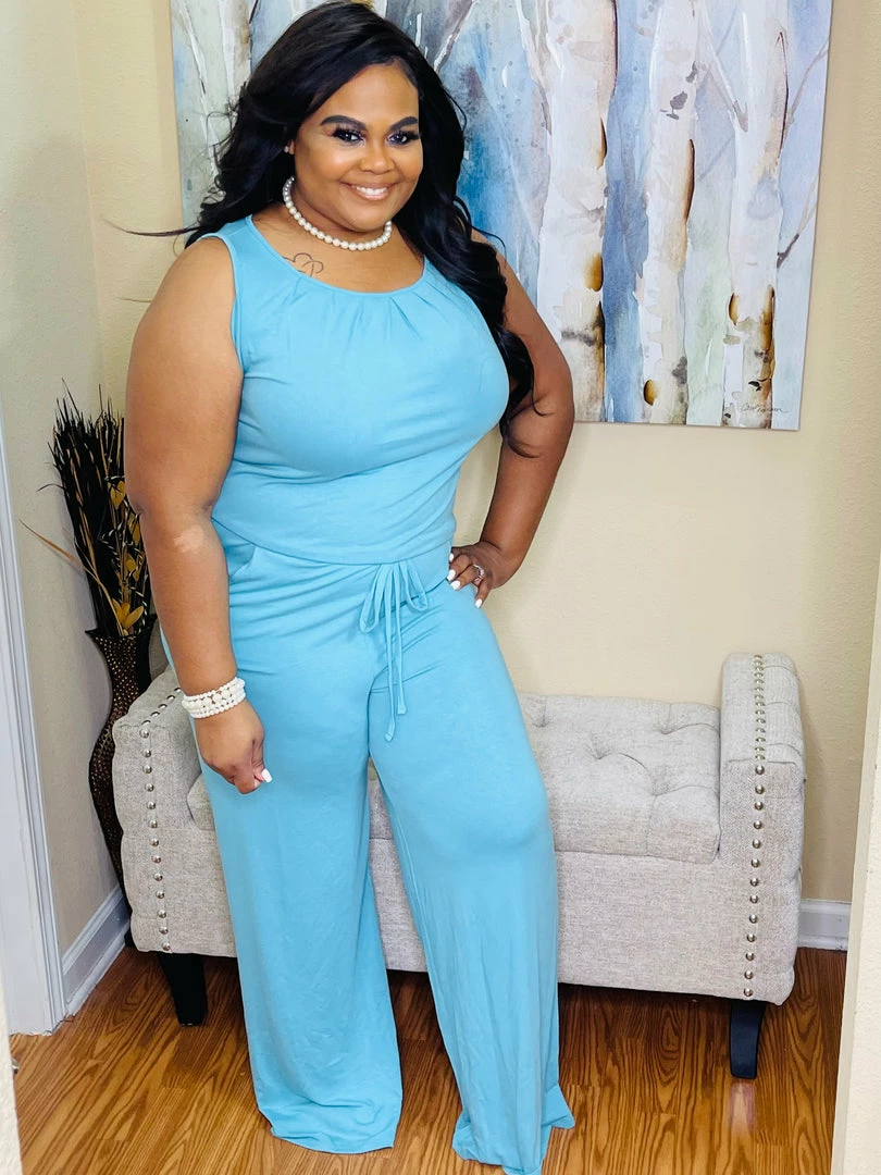 - Short Sleeve Jumpsuit with elastic waist & back keyholeÂ