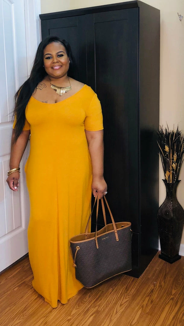 - Premium Fabric V-Neck Short Sleeve Maxi Dress With Side Pockets