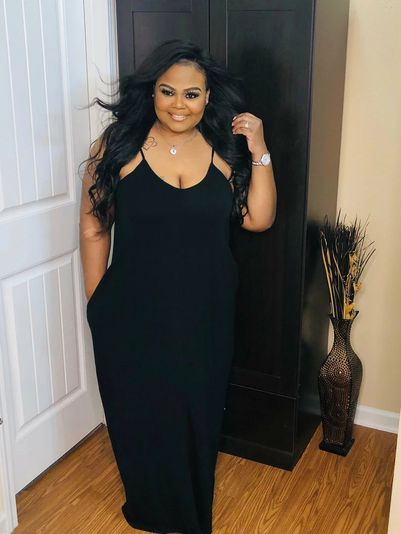 - V-Neck cami maxi dress with side pocketsÂ