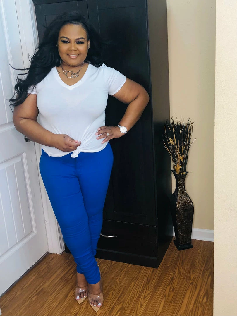 - High waist jegging pants with zipper and button to secure. Pockets on the back.
