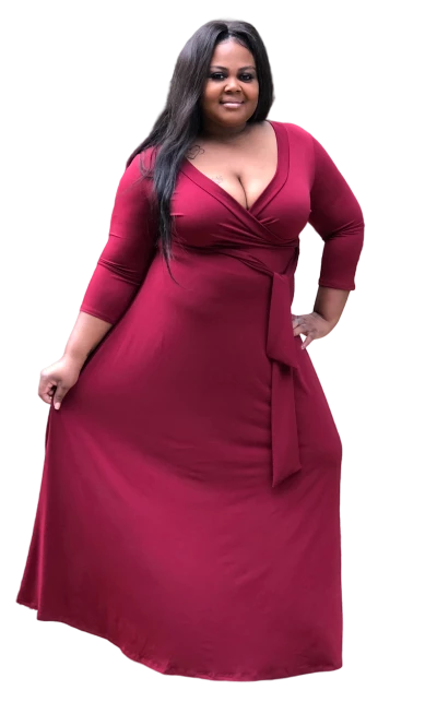 - PLUS SIZE – Solid ITY 3/4 sleeve maxi wrap dress,