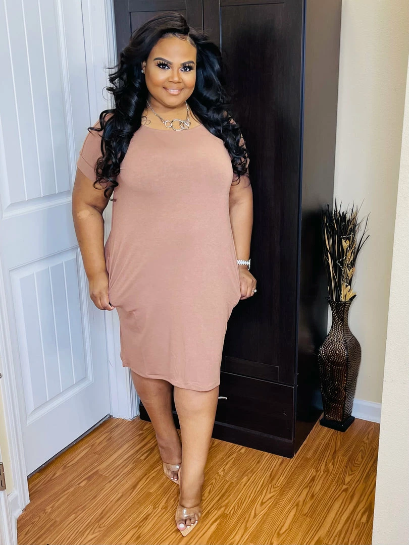 - premium fabric rolled short sleeve v-neck dress