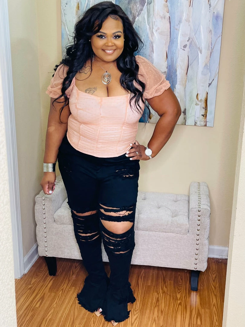- Â Plus size power mesh polka dot lined cropped top