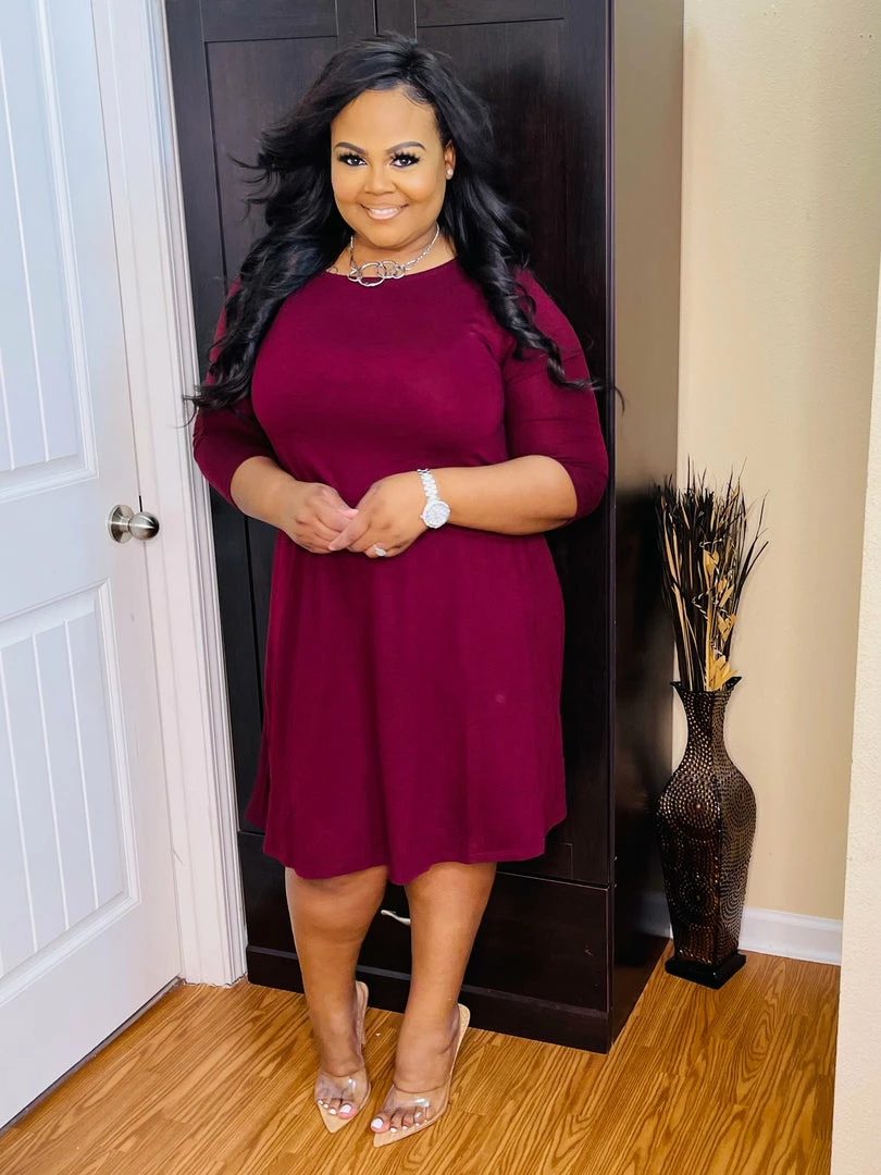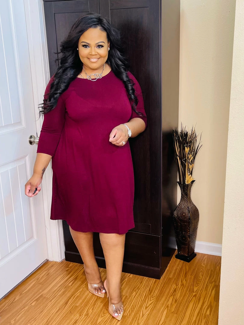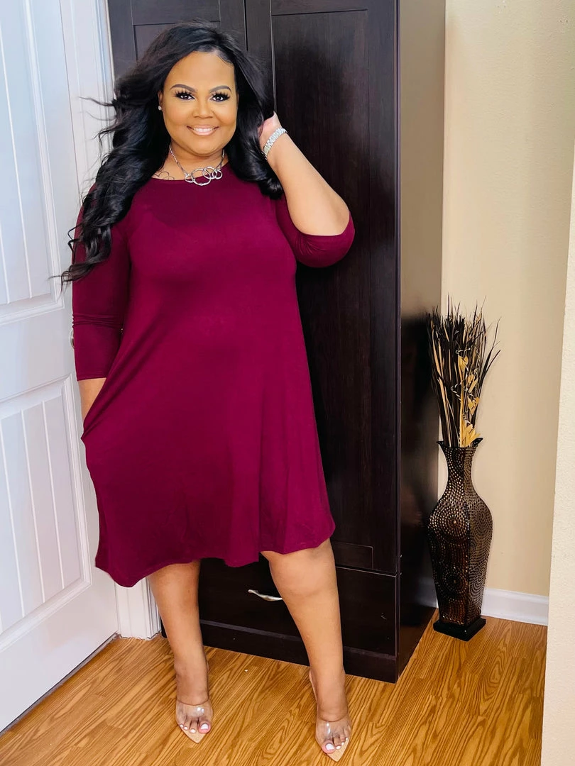 - PLUS 3/4 SLEEVE FLARE DRESS WITH SIDE POCKETS