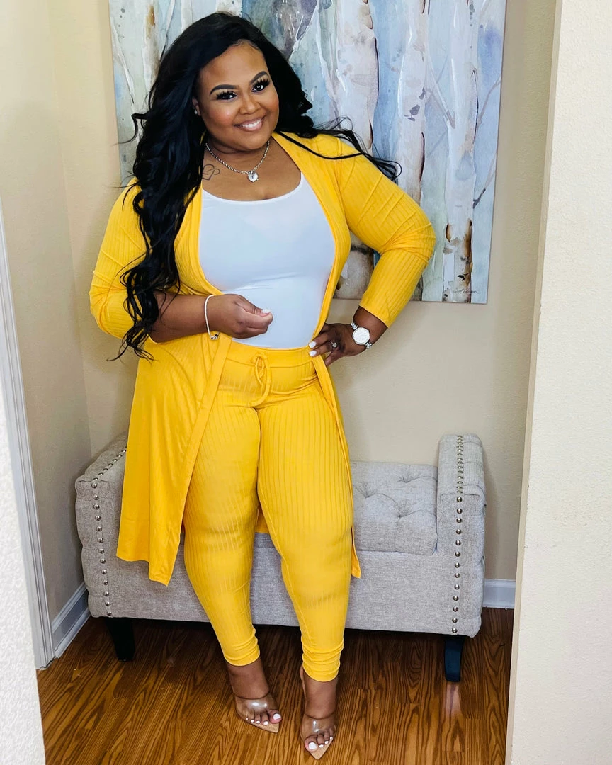 - PLUS SIZE Cardigan and leggings set - Ribbed knit - Long sleeves - Elasticized waist with ribbon bow - Solid - 92% Polyester 8% Spandex