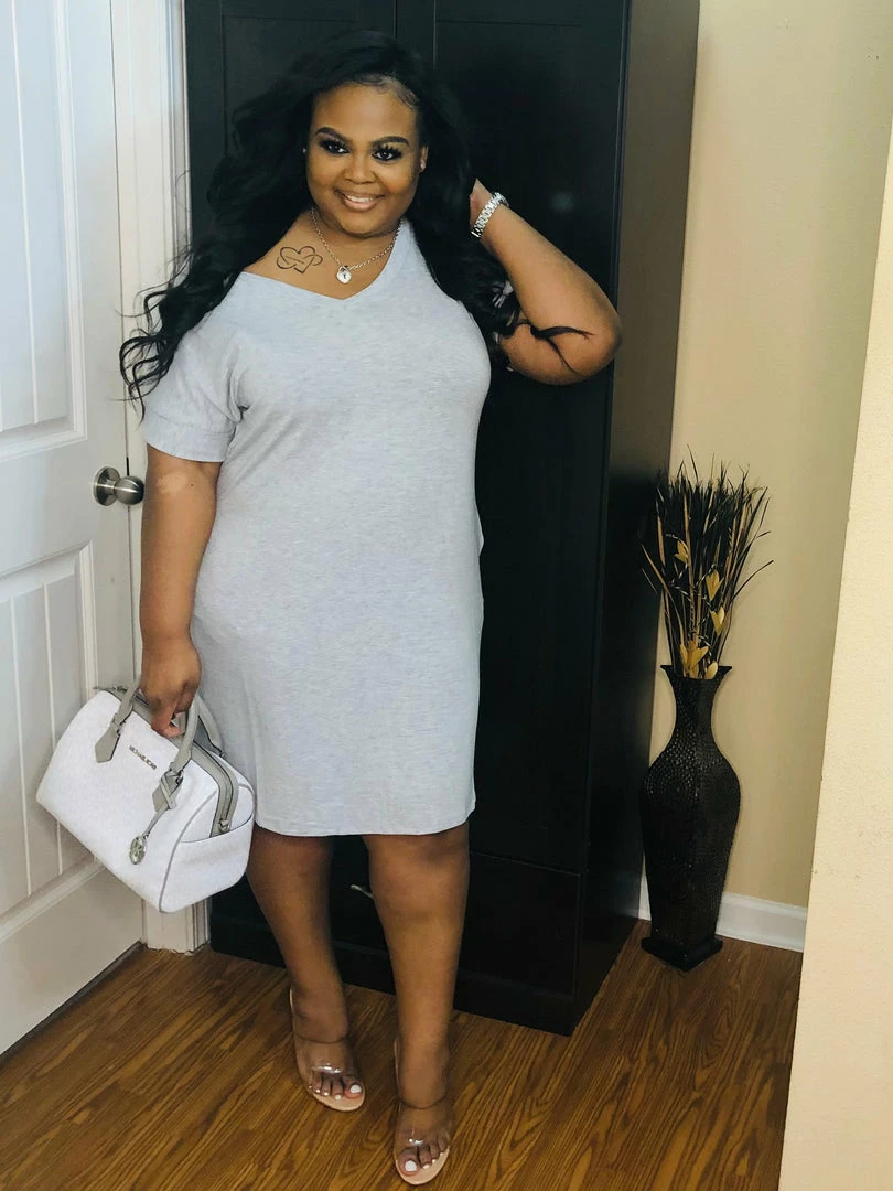 - premium fabric rolled short sleeve v-neck dress