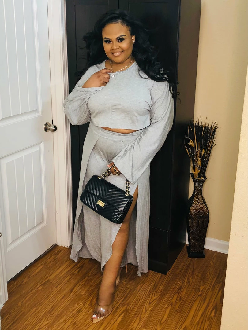 - slouchy top and slit font wide leg pants two piece set