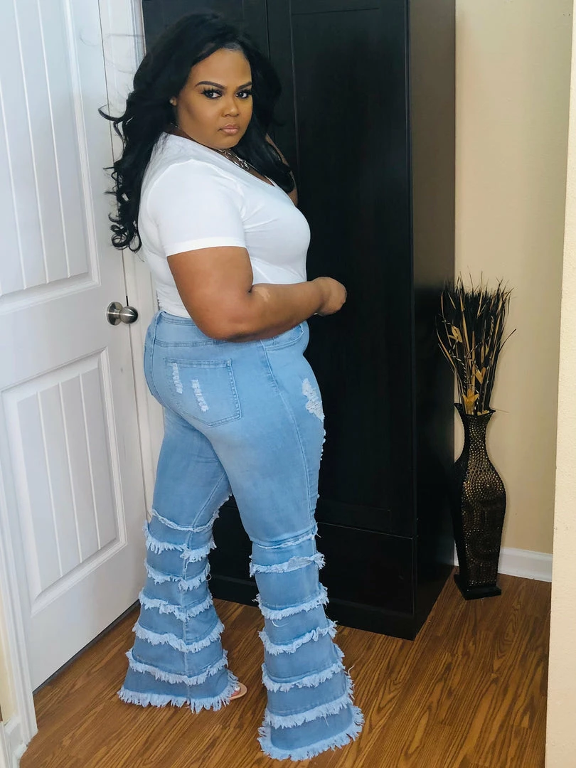 - DISTRESSED WIDE LEG DENIM PANT