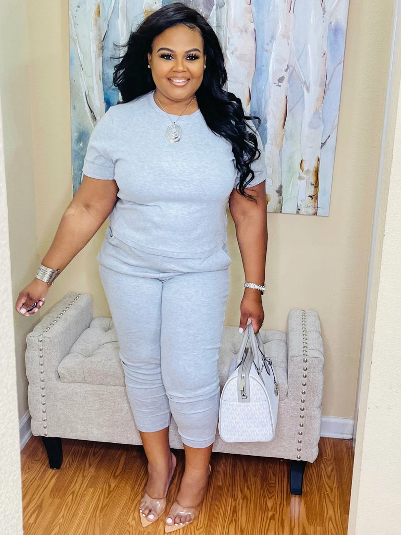 - COTTON ROLLED SHORT SLEEVE TOP & ELASTIC WAISTBAND PANTS SET