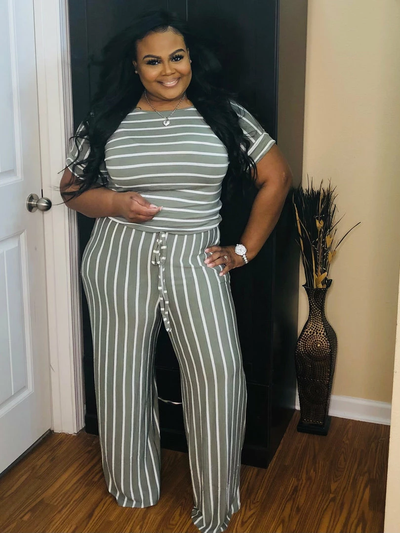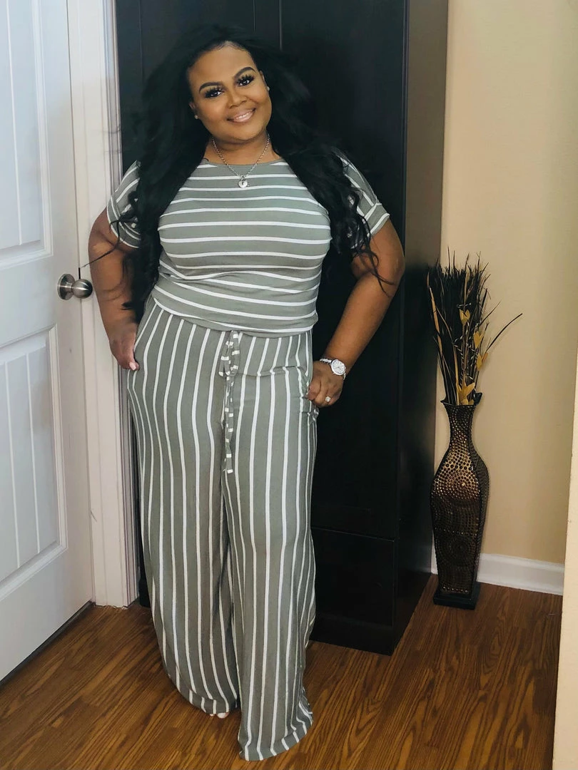 - STRIPE JUMPSUIT WITH ELASTIC WAIST & BACK KEYHOLE OPENING