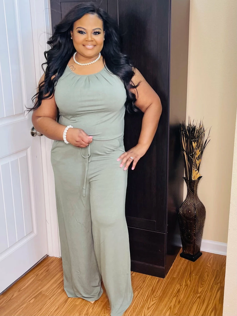 - Short Sleeve Jumpsuit with elastic waist & back keyholeÂ