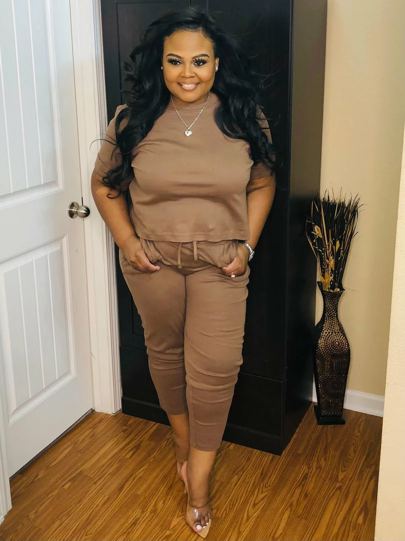 - COTTON ROLLED SHORT SLEEVE TOP & ELASTIC WAISTBAND PANTS SET