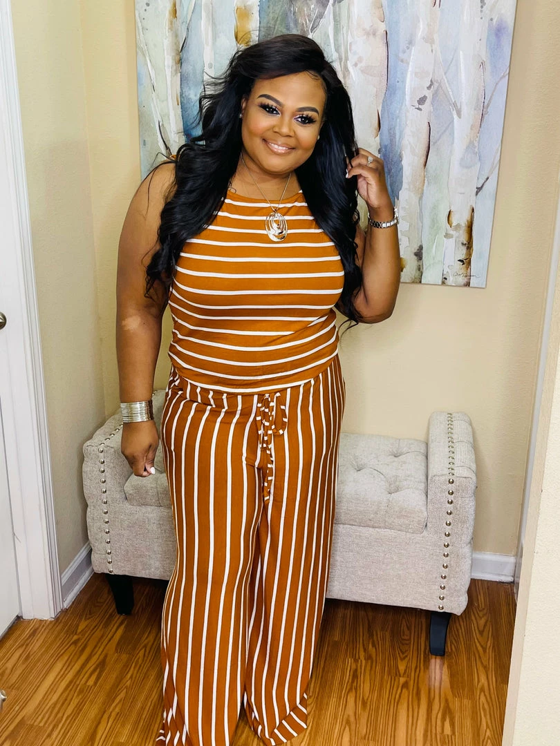- PLUS STRIPE SLEEVELESS JUMPSUIT WITH ELASTIC WAIST & BACK KEYHOLE OPENING