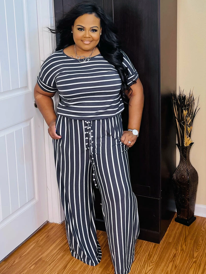 - PLUS STRIPE JUMPSUIT WITH ELASTIC WAIST & BACK KEYHOLE OPENING