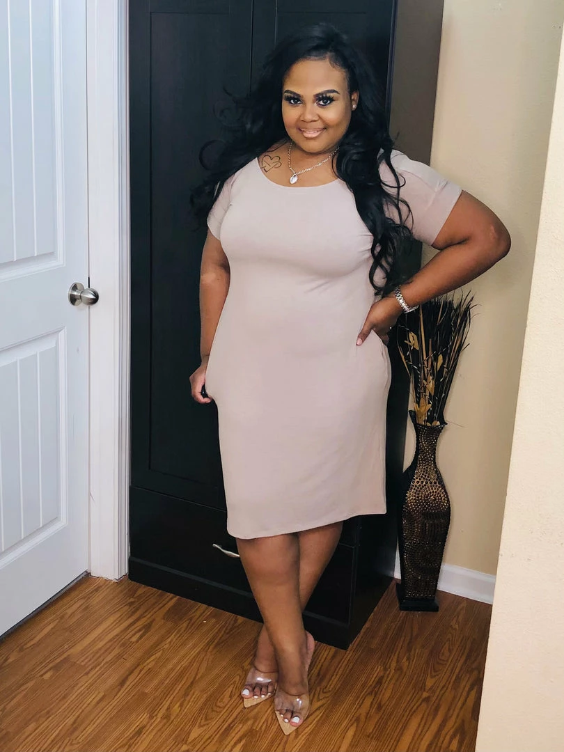 - premium fabric rolled short sleeve v-neck dress