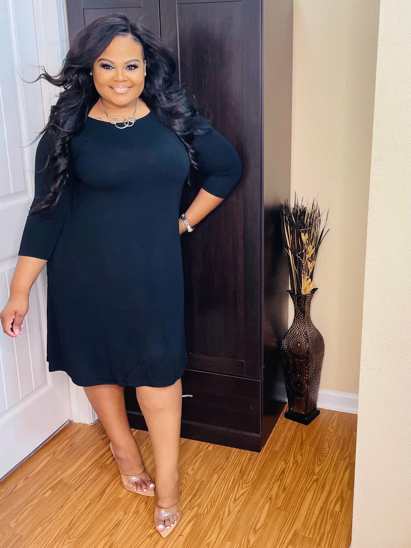 - PLUS 3/4 SLEEVE FLARE DRESS WITH SIDE POCKETS