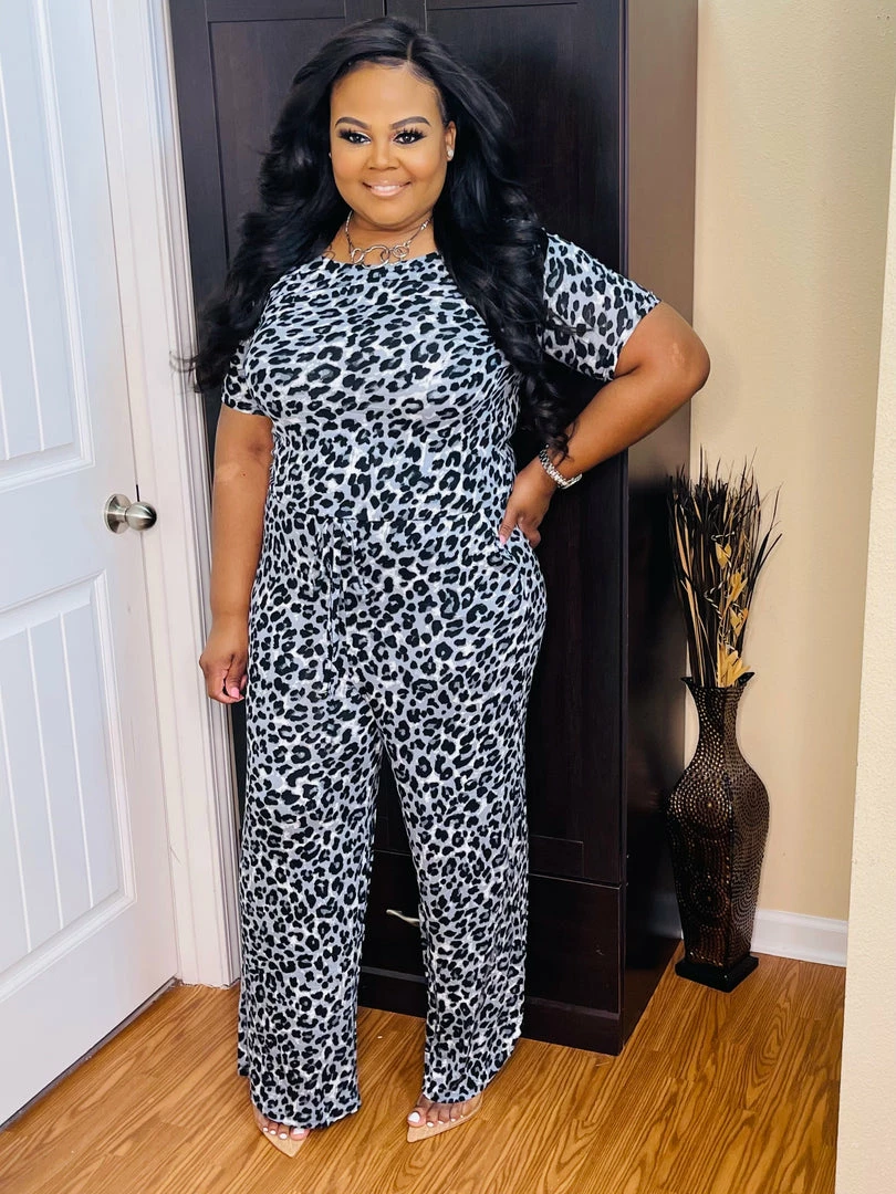 - Short Sleeve Jumpsuit with elastic waist & back keyhole