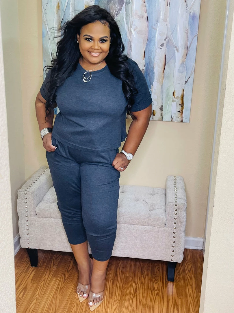 - COTTON ROLLED SHORT SLEEVE TOP & ELASTIC WAISTBAND PANTS SET