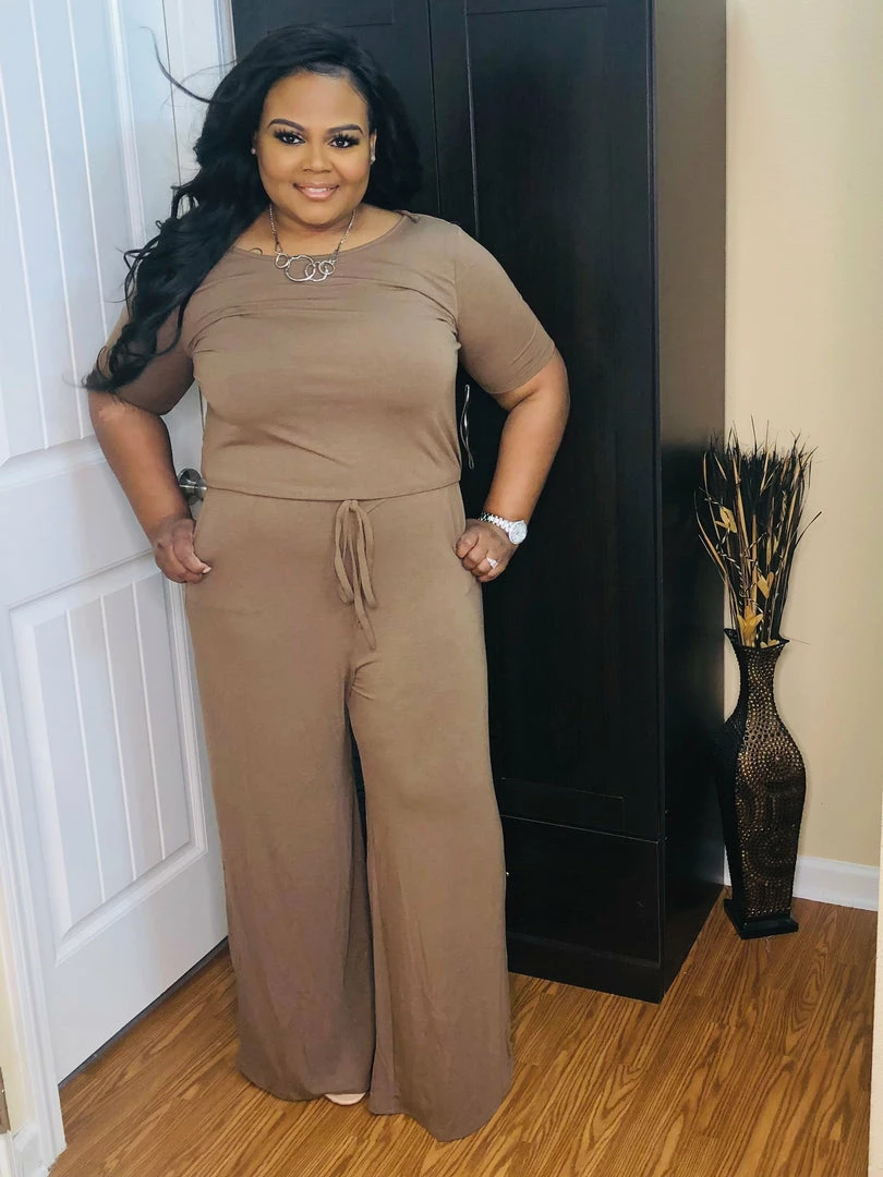 - Short Sleeve Jumpsuit with elastic waist & back keyhole