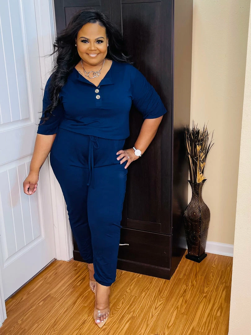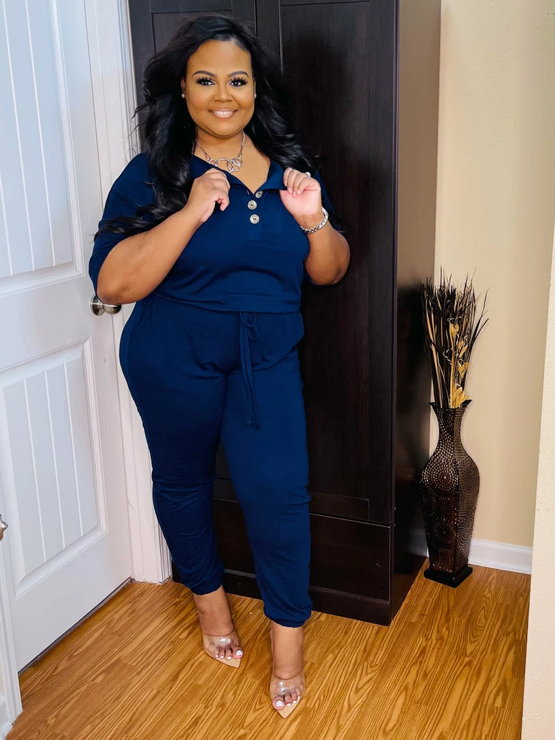 - PLUS HALF SLEEVE JOGGER JUMPSUIT WITH POCKETS