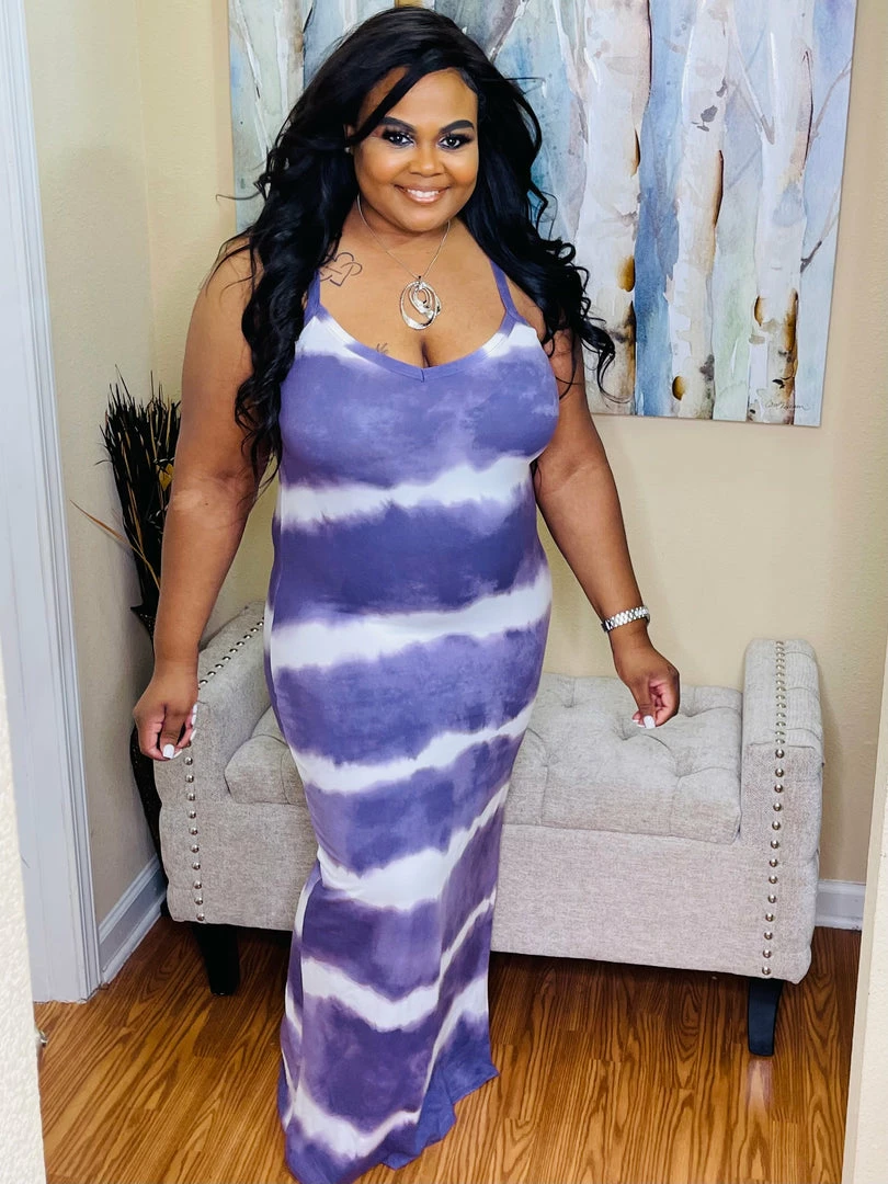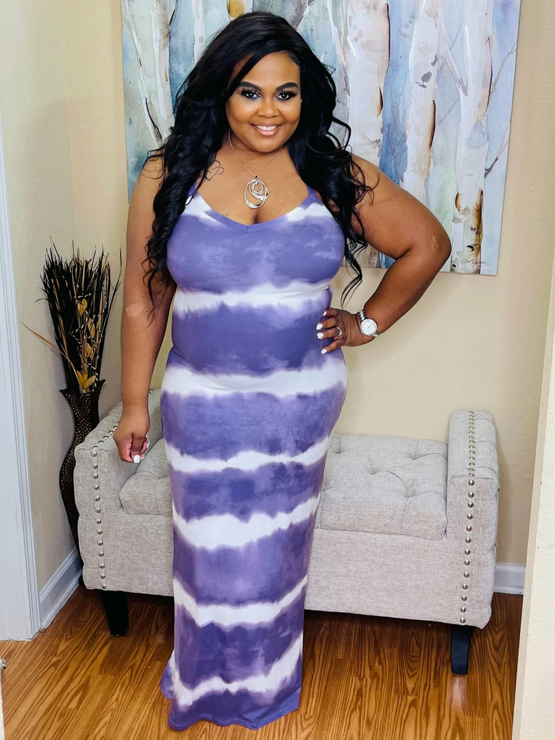 Stripe tye-dye printed maxi dress