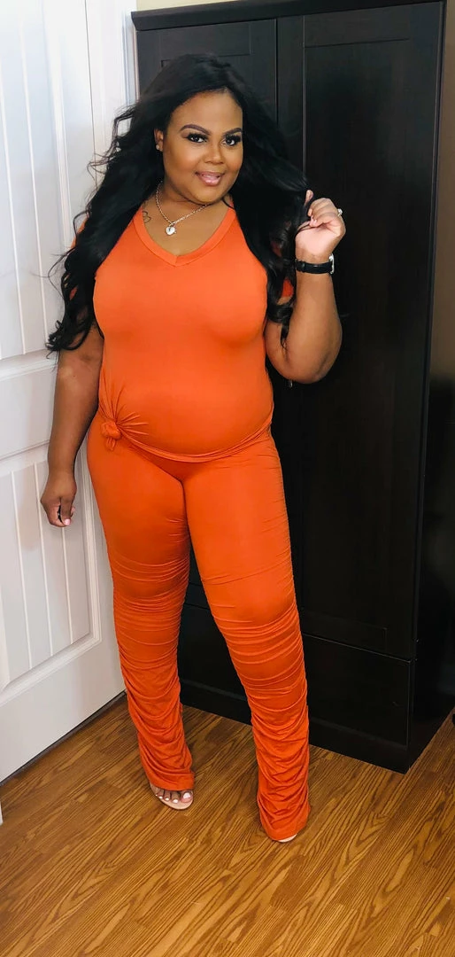 - RUST SOLID TOP AND SCRUNCH PANTS SET